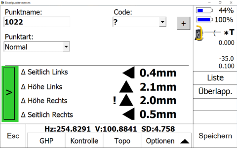 • Live-Anzeige der Differenzen zwischen Ist und Soll entsprechend der Gleistrassierung