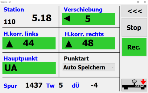 - Live-Anzeige der Differenzen zwischen Ist und Soll entsprechend der Gleistrassierung