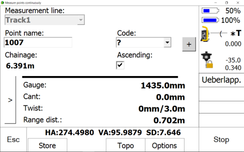 - Capturing of absolute track position with track gauge, cant (superelevation) and twist