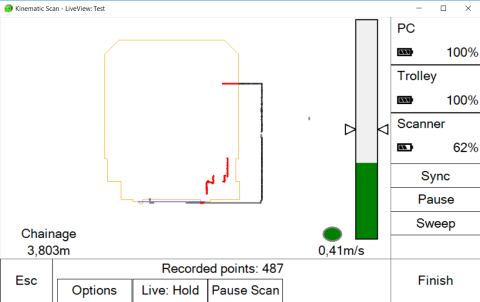 Software for kinematic capture of laser scan data utilizing a Trimble GEDO CE 2.0 track measurement trolley and a laser scanner.