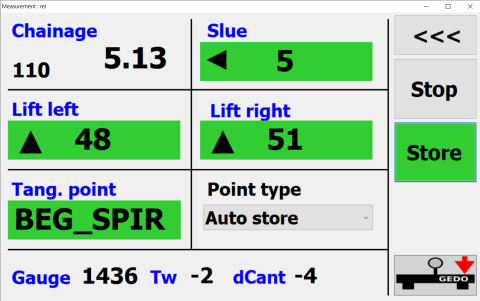 Software for pre-measurement utilizing two Trimble GEDO CE 2.0 track measurement trolleys and a Trimble S-Series total station.