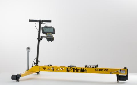 The Trimble GEDO IMS system consists of the Trimble GEDO CE 2.0 track measurement trolley with a Trimble GEDO IMU and a Trimble control unit in combination with a Trimble GEDO Profiler or a Trimble total station.